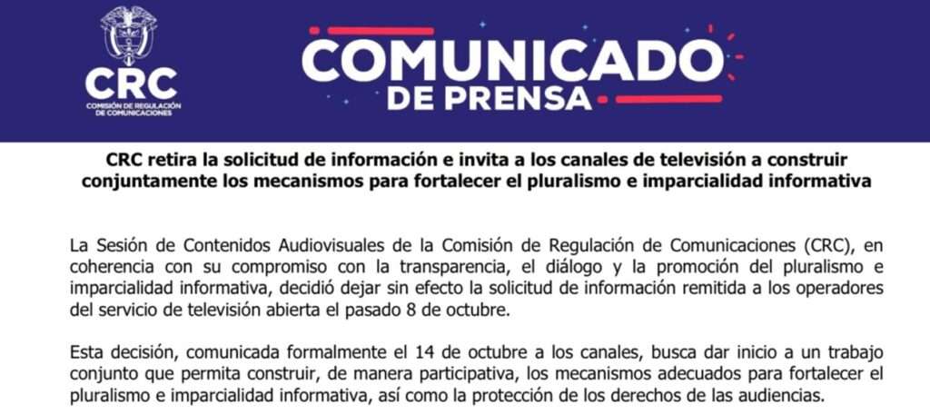 Luego de haber exigido documentos internos como actas de consejos editoriales, manuales y políticas de funcionamiento a los canales de