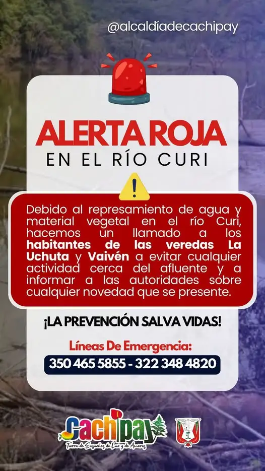 La Alcaldía de Quipile declaró alerta máxima por una remoción en masa en Anolaima que taponó el río Curí, generando