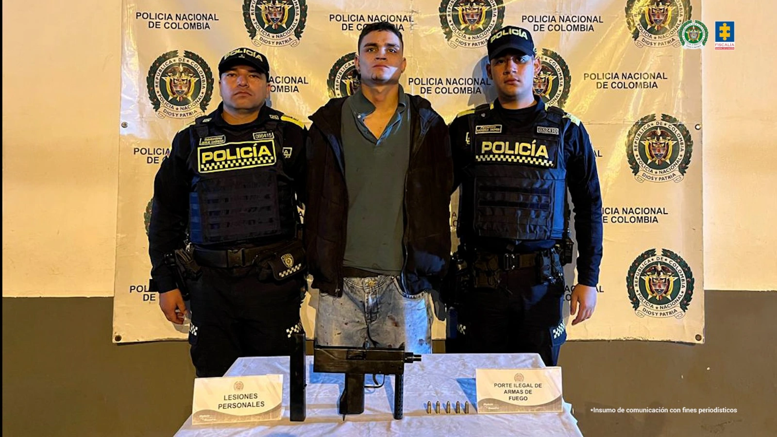 Tras lo ocurrido, uniformados de la Policía lograron capturarlo en flagrancia. Durante el procedimiento le incautaron un arma de fuego, un proveedor metálico y cinco cartuchos. Un fiscal le imputó cargos por tentativa de homicidio, lesiones personales agravadas y porte ilegal de armas. Sin embargo, el procesado no aceptó los cargos.