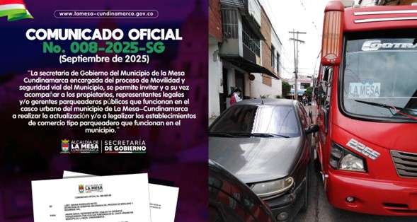 La Mesa, Cundinamarca, a través del proceso de Movilidad y Seguridad Vial, invita a los propietarios, representantes legales y gerentes de los parqueaderos públicos ubicados en el casco urbano del municipio, a realizar la actualización y legalización de sus establecimientos de comercio.