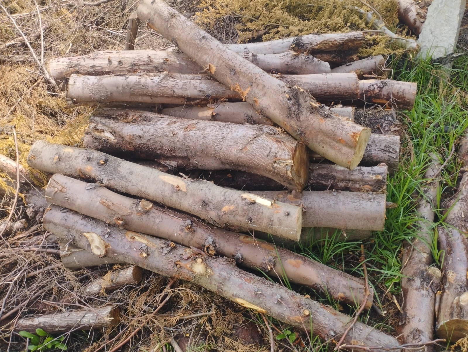 Durante la visita técnica, los funcionarios evidenciaron 42 unidades de madera rolliza de la especie ciprés que había sido apilada en el lugar, aparentemente producto de un aprovechamiento forestal sin autorización.
