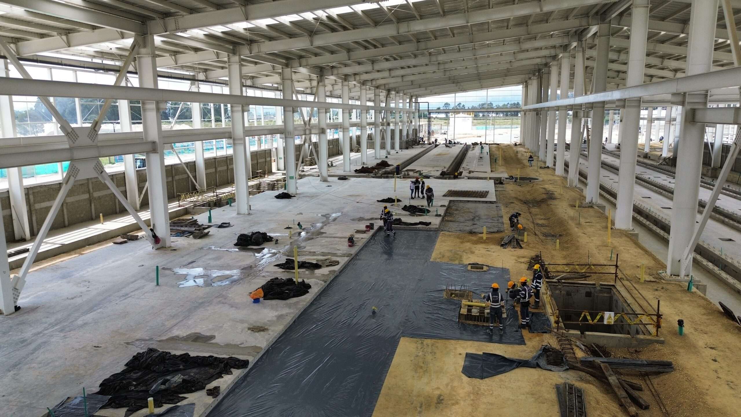 En Mosquera, el patio taller —donde se realizará el mantenimiento de los trenes— presenta un avance del 34 %. Allí se construyen las naves principales, la zona de vías férreas y el futuro Centro de Control de Operaciones, que será el punto de mando para la operación y el mantenimiento del sistema.