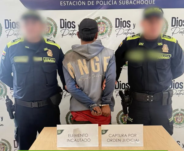 El procedimiento se realizó en la vereda Tibagota durante jornadas de control y seguridad adelantadas en el municipio, en las que participaron unidades de la Policía Nacional. Durante las verificaciones realizadas por las autoridades se confirmó que el ciudadano tenía una orden judicial vigente emitida por el Juzgado Penal Municipal N.º 1 de Subachoque.