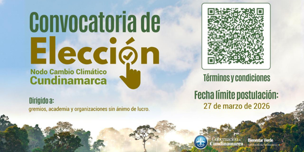 La Secretaría de Bienestar Verde de Cundinamarca abrió la convocatoria para elegir tres representantes de gremios y asociaciones del sector privado, academia y entidades sin ánimo de lucro que integrarán el Nodo de Cambio Climático de Cundinamarca durante un período de cuatro años.