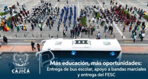 La jornada incluyó la entrega de un bus escolar, instrumentos para las bandas marciales de las instituciones oficiales y apoyos