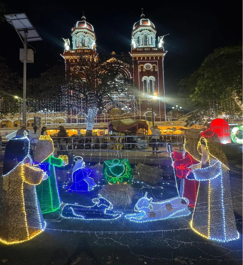 Las decoraciones y alumbrados están elaborados en gran parte con materiales reciclados, resultado del trabajo comunitario de madres cabeza de hogar y fundaciones locales, quienes durante meses recolectaron y transformaron residuos en pesebres y figuras navideñas llenas de creatividad.