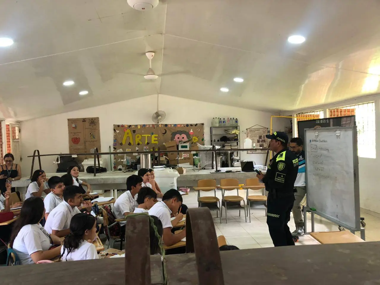 La actividad se desarrolló en articulación entre la Policía Nacional y la institución educativa como parte de las estrategias territoriales orientadas a prevenir violencias desde edades tempranas y fortalecer procesos de acompañamiento comunitario en el municipio.