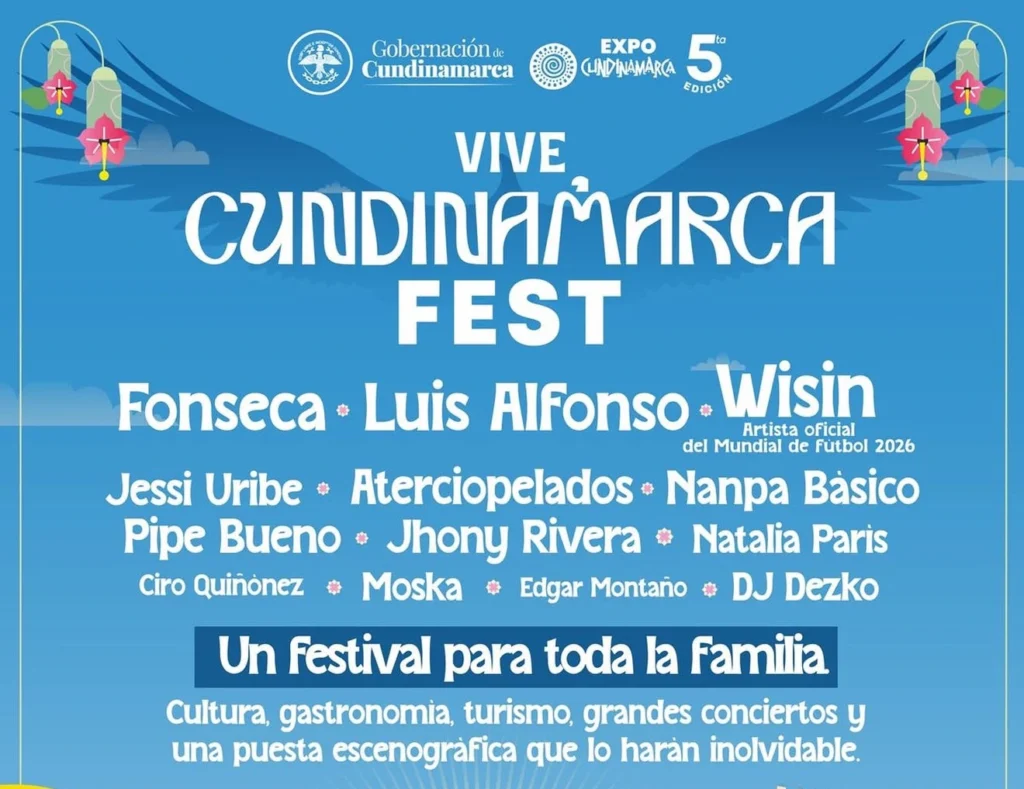 El evento, organizado por la Gobernación de Cundinamarca, reunirá a destacados artistas nacionales e internacionales , además de ofrecer muestras gastronómicas, exhibiciones turísticas, actividades deportivas y espacios institucionales donde los asistentes podrán conocer la oferta de programas y servicios del departamento.