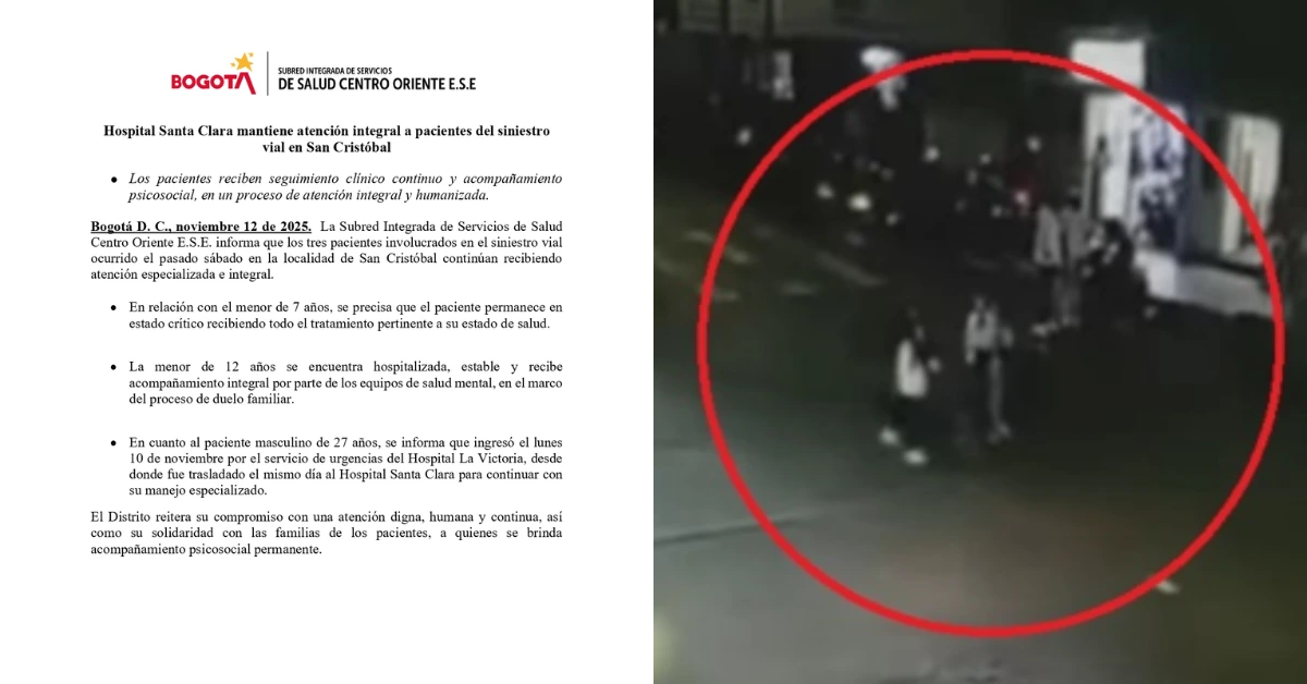 Por su parte, la menor de 12 años se encuentra hospitalizada, estable y bajo acompañamiento integral de los profesionales de salud mental, en el marco del proceso de duelo familiar. “Desde nuestro componente psicosocial continuamos acompañando a la niña y a sus familiares en este difícil momento”, agregó la Subred.