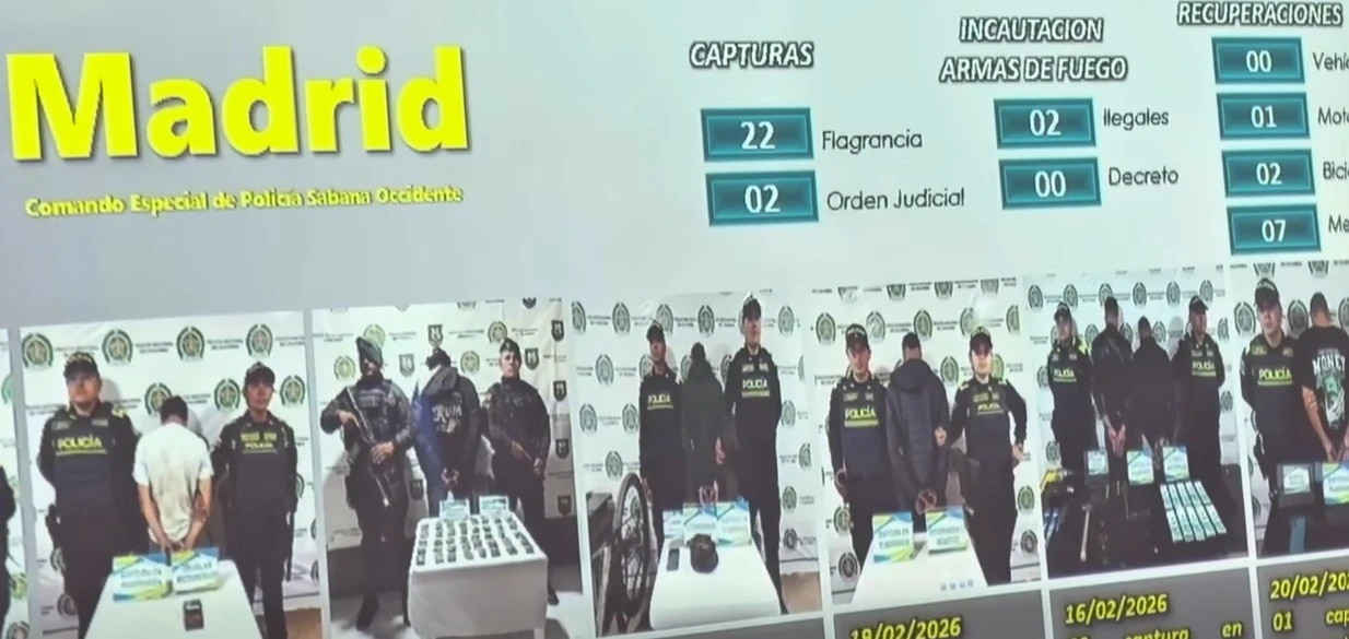 La Alcaldía de Madrid, Cundinamarca, y la Policía Nacional presentaron el balance operacional del primer trimestre de 2026, en el que se destacan 62 órdenes de captura por diferentes delitos, entre ellos homicidio y hurto, además de tres capturas por orden judicial.
