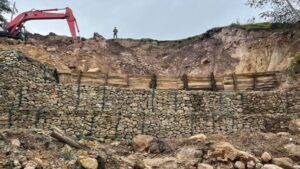 La obra consistió en la construcción de 280 metros cúbicos de gaviones destinados a la contención, prevención y mitigación del