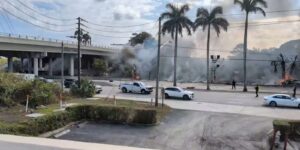 El siniestro ocurrió en la mañana en la intersección de North Military Trail y Glades Road, generando un incendio que