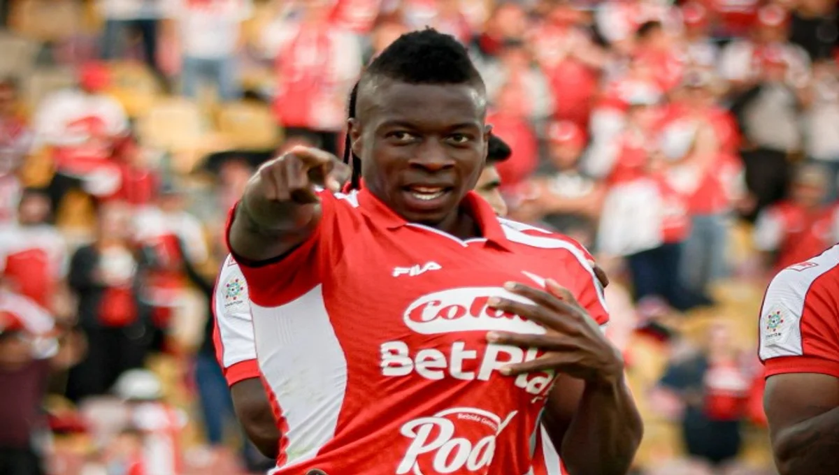 Helibelton Palacios marcó el lunes 23 de marzo su primer gol con Santa Fe. Foto; Independiente Santa Fe