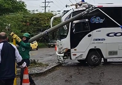 De igual forma, un bus de transporte intermunicipal colisionó contra un poste tras realizar una maniobra evasiva por el crecimiento de la quebrada Agua Blanca.
