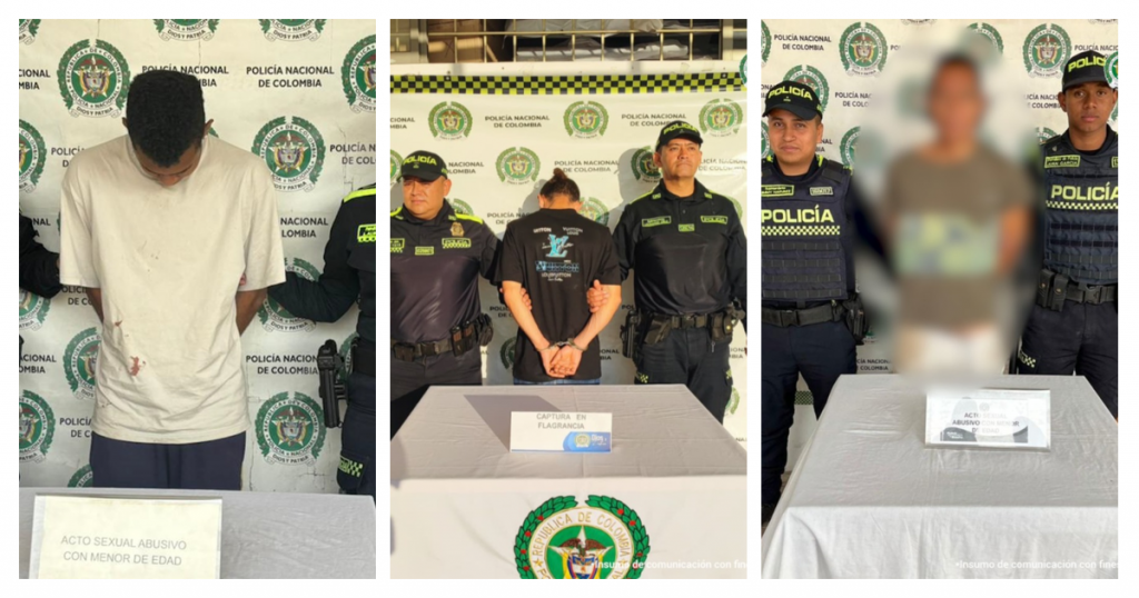 Los tres hombres fueron capturados por la Policía y deben responder por delitos como acceso carnal y actos sexuales con menor de 14 años. Foto: Policía Nacional